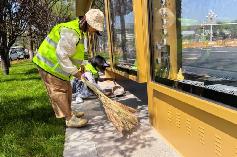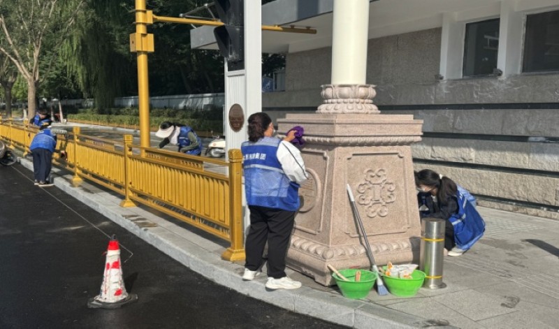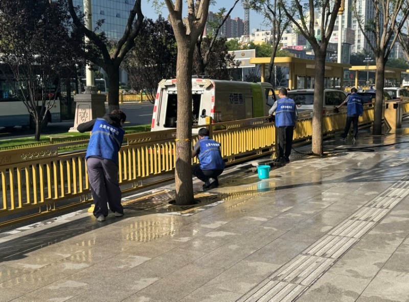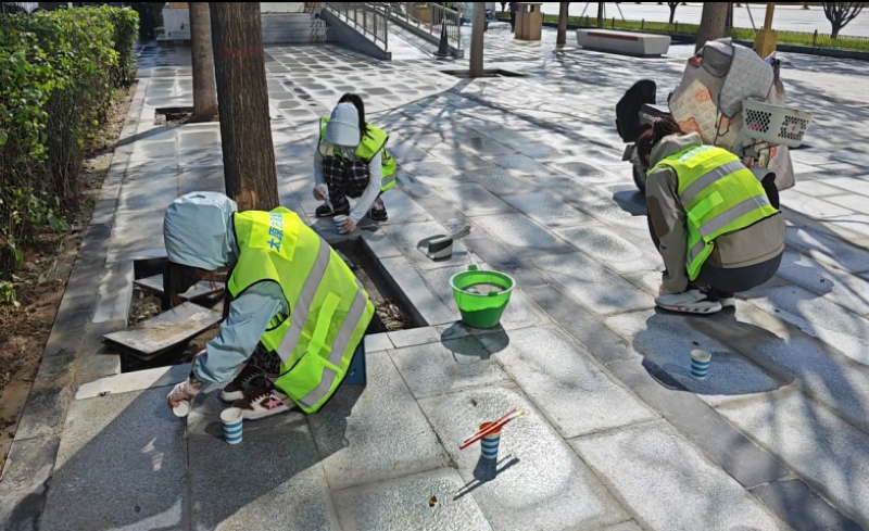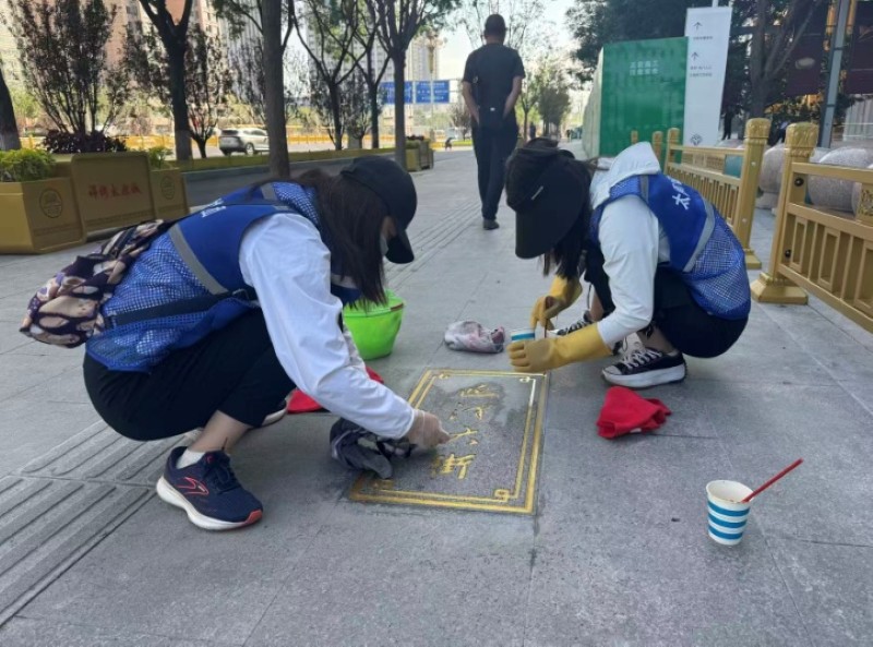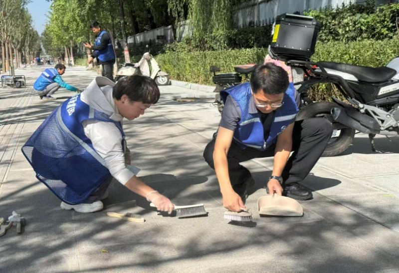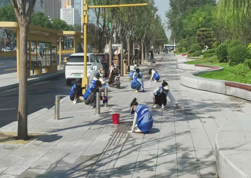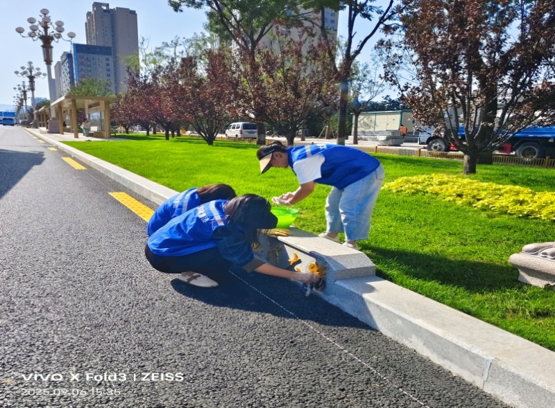 活動(dòng)自9月4日起為期六天,覆蓋迎澤大街(西段)全線(xiàn),重點(diǎn)圍繞附屬設施清潔與道路精細化維護展開(kāi)?;顒?dòng)中,身著(zhù)統一藍色“太原市政集團”馬甲的志愿者們,手持長(cháng)柄擦洗器、水桶、抹布、鏟刀、掃帚等工具,對道路兩側公交站臺、路燈基地、護欄、照明燈桿等設施進(jìn)行系統清理與擦洗;同步推進(jìn)地磚灌縫精細化維護作業(yè),通過(guò)專(zhuān)業(yè)操作,確保每一條裂縫都“嚴絲合縫”,有效提升路面耐用性與通行舒適度,以實(shí)際行動(dòng)為市民出行安全與舒適保駕護航;同時(shí),志愿者專(zhuān)門(mén)對道路沿線(xiàn)的石頭字景觀(guān)展開(kāi)描金作業(yè),細刷蘸取金色涂料,一筆一畫(huà)精心描摹,成為主干道上一道兼具文化氣息與視覺(jué)美感的獨特風(fēng)景。