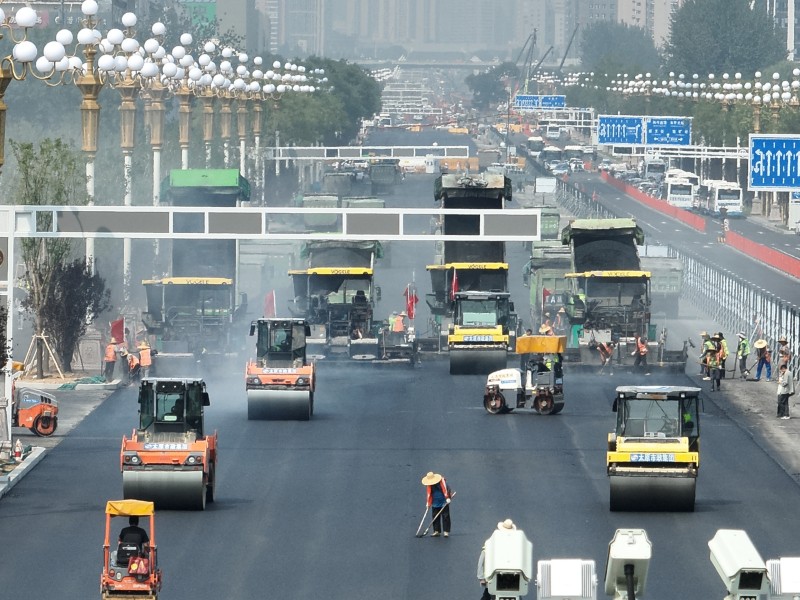 面對全長(cháng)4.3公里的施工戰線(xiàn),租賃公司和路面公司展現了高度的專(zhuān)業(yè)協(xié)作與責任擔當。租賃公司科學(xué)調度大量大型機械設備,包括銑刨機、壓路機和攤鋪機等,按照施工計劃分批次進(jìn)場(chǎng),確保了“分段流水、平行作業(yè)”模式的高效運轉。通過(guò)精準匹配機械供應與作業(yè)面規劃,他們?yōu)楣こ烫峁┝藞詫?shí)的設備保障,同時(shí)嚴格執行機械操作安全規程,有效管控高風(fēng)險作業(yè)環(huán)節。在機械設備充足的同時(shí),路面公司聚焦道路施工的質(zhì)量與精細化管理。在完成地下管網(wǎng)改造工程后,他們迅速推進(jìn)路面工程施工進(jìn)度,實(shí)施水穩、瀝青鋪筑工作。面對高溫和雨季的持續挑戰,路面公司施工人員堅守一線(xiàn),嚴格把控每道工藝,以精益求精的施工質(zhì)量和爭分奪秒的施工速度圓滿(mǎn)完成施工任務(wù),完成全線(xiàn)水穩和瀝青的攤鋪工作。租賃公司和路面公司通過(guò)與施工單位的緊密配合,展現了同心協(xié)力、協(xié)同作戰的施工風(fēng)采,助力迎澤大街(西段)煥新升級,彰顯了太原市政集團的專(zhuān)業(yè)水準與責任使命。